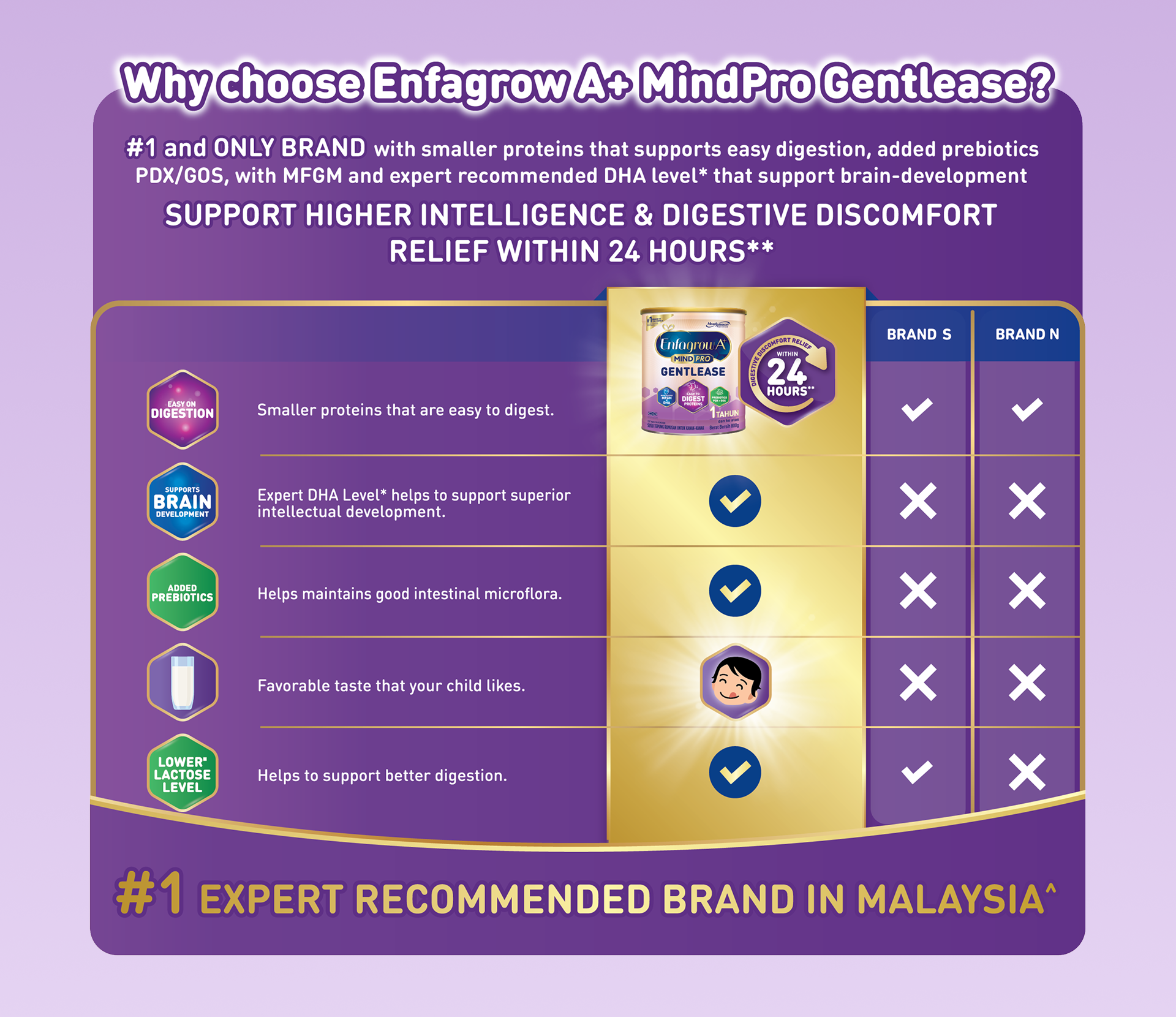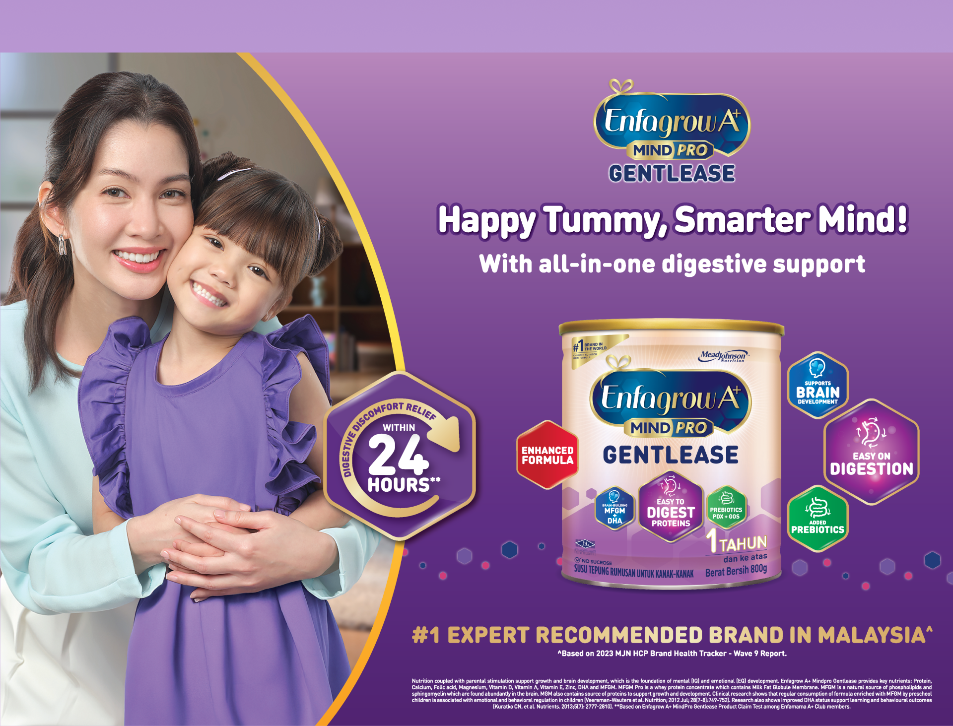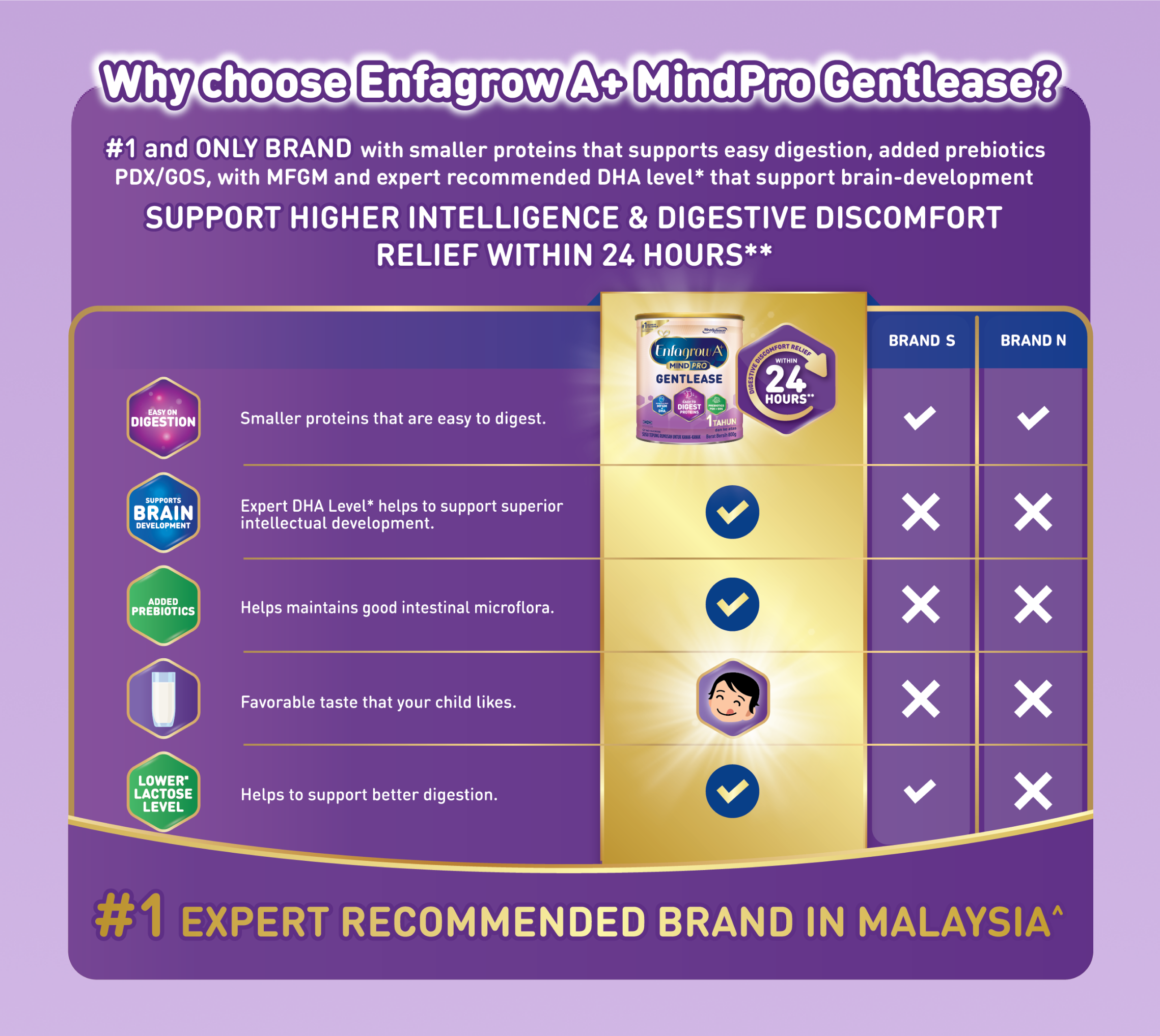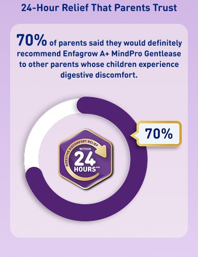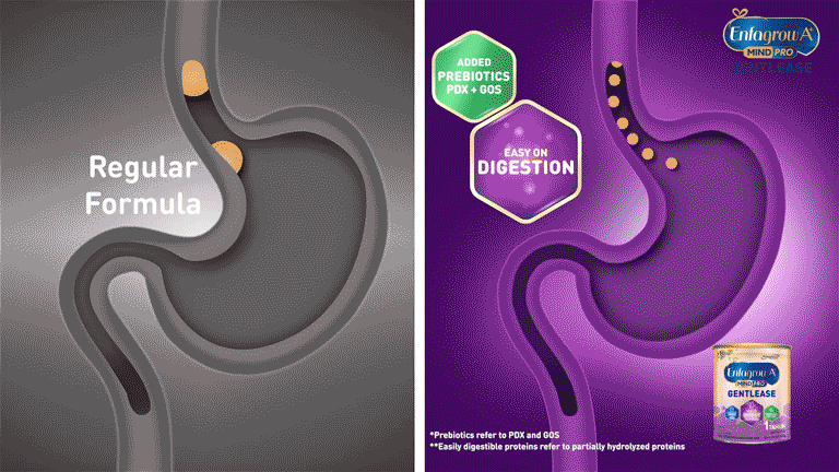 Enfagrow A+ MindPro Gentlease is scientifically design to support easy digestion and with digestive discomfort relief within 24 hours, while supporting brain development with higher intelligence for your child.